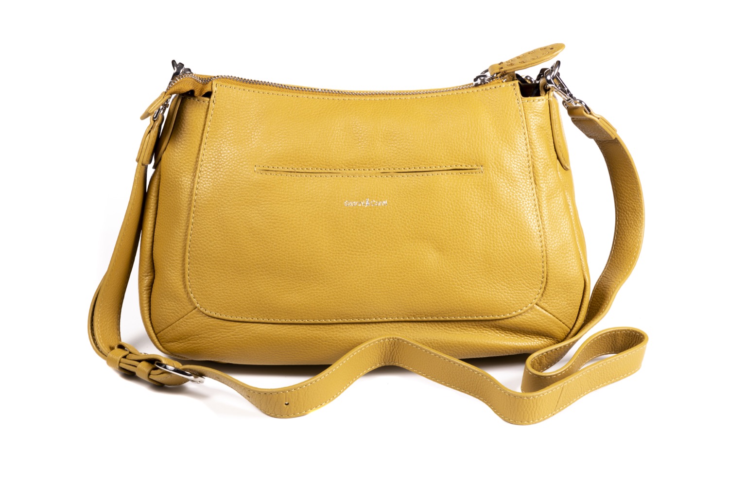 Fabricado con piel vacuna de primera calidad, este bolso destaca por su resistencia, textura y sofisticación. Disponible en cuatro colores versátiles: naranja, amarillo, negro y cuero, es perfecto para reflejar tu personalidad y adaptarse a cualquier look.