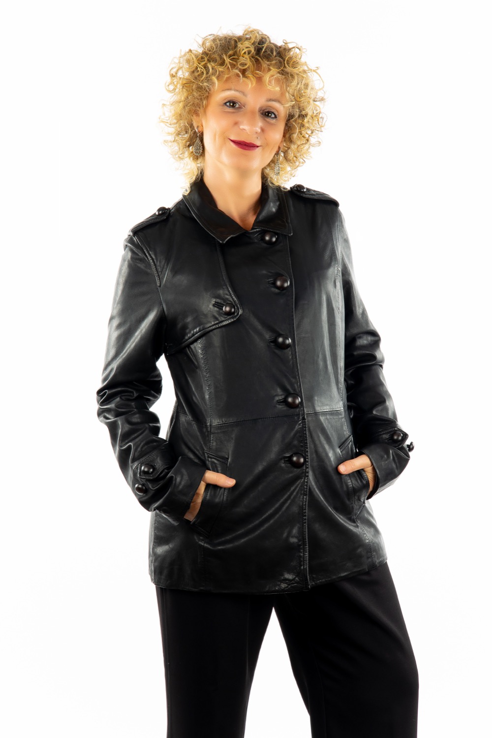 • Al estilo de la clásica gabardina pero con un largo más cómodo. Charreteras en los hombros, una piel mate, unos botones de pasta redondos y un forro atrevido contrastado dan a esta chaqueta una elegancia con un toque de rebeldía.